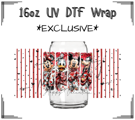 Happy Valentines Mickey & Gang UV DTF Libby Wrap 16oz
