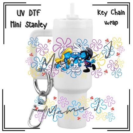 Smurf Love UV DTF Mini Stanley Key Chain Wrap