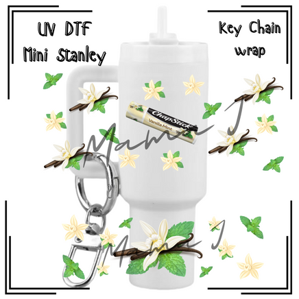 Vanilla Mint UV DTF Mini Stanley Key Chain Wrap