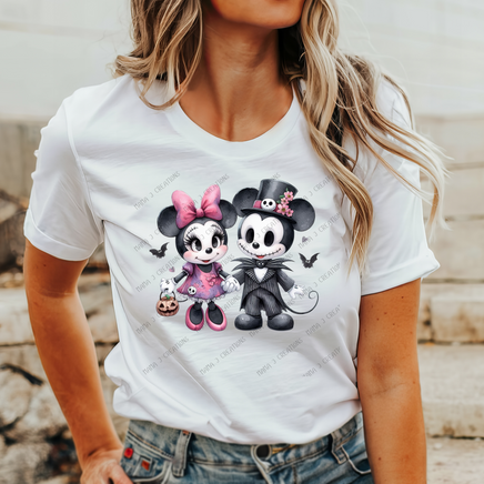 Mickey & Minnie Jack Skellington Watercolor HTV Heat Transfer (Exclusive Design)