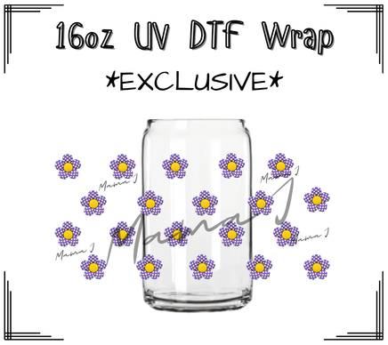 Purple Checkered Flowers UV DTF Libby Wrap 16oz